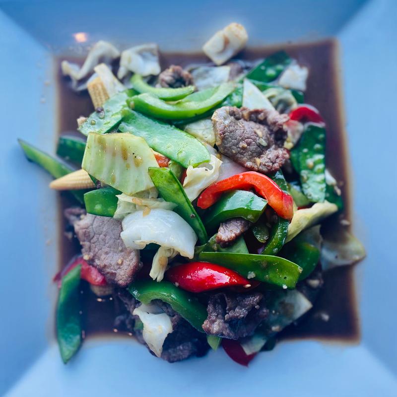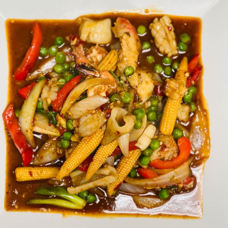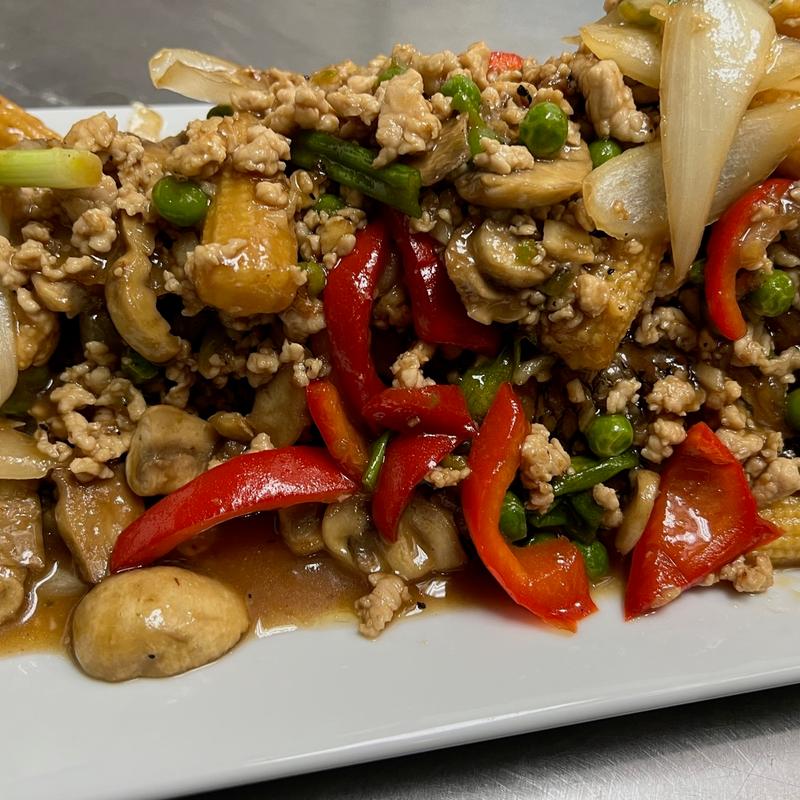 Select one of the following proteins with one vegetable combination. Tofu $10.95, Chicken, Beef or Pork $11.95, Duck $13.95, Shrimp $12.95, Seafood $13.95